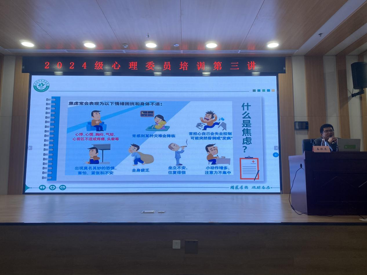 本网讯(通讯员 胡舒乐 彭照恒)11月7日晚,学校特邀武昌医院临床心理科主任姜振东为2024级心理委员做常见心理疾病的科普培训。姜医生从《2022年国民抑郁症蓝皮书》切入,深入分析了我国抑郁症的主要引发原因、近年来我国抑郁人群的增加趋势、治疗现状等,强调青少年心理健康亟需社会重视。紧接着姜医生结合自己丰富的临床工作经验,为大家详细介绍焦虑障碍、抑郁障碍、强迫障碍等大学生群体中常见心理疾病的临床症状及干预方法。讲座的最后,...