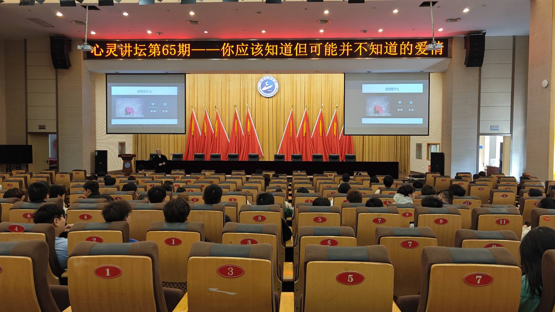 本网讯(通讯员 雷辉 万柯言 张明远)近日,学校邀请华中师范大学心理健康中心注册心理师余海军做客我校第65期心灵讲坛,在四教多功能报告厅为学生举行“你应该知道但可能并不知道的爱情”的主题讲座。法商学院辅导员代表及全校300余名师生参加讲座讲座。讲座由校心理健康教育中心常务副主任、副教授雷辉主持。讲座上,余海军老师的提问“在你心中,爱情是什么?”,引发了同学们的热烈反响。随后,余海军老师围绕“爱情是什么”、“...