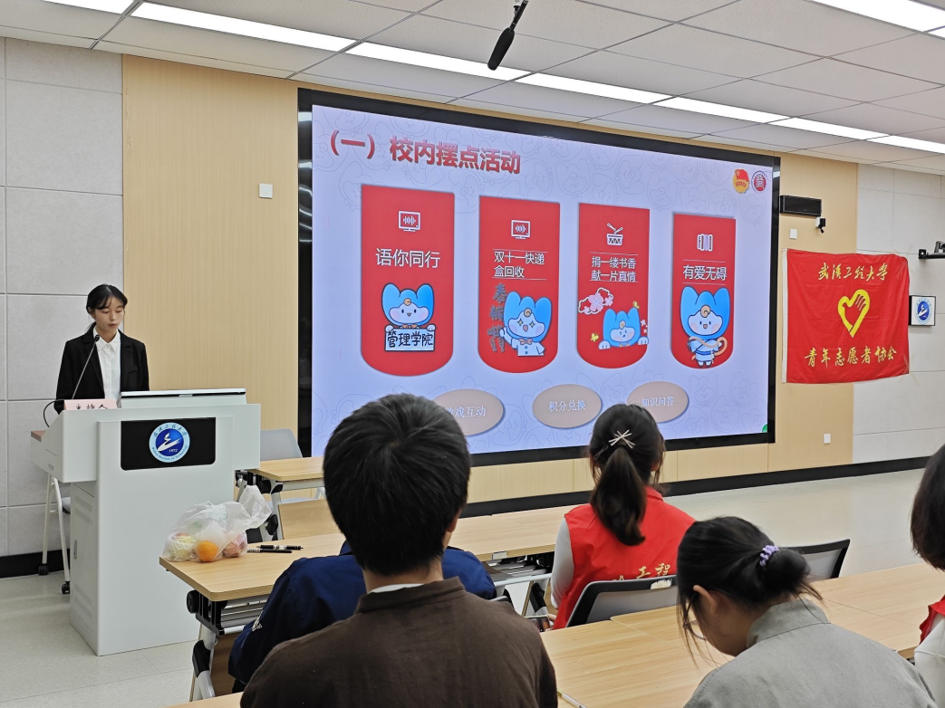本网讯(通讯员 杨荣佳 樊思雨)11月14日,“青春志愿行,奋进新征程”省级本禹志愿服务大讲堂活动走进学校,团省委教师肖艳慧、招商银行武汉分行代表、学校省级本禹志愿服务团队代表、各级青年志愿者协会成员近百人参会。管理学院“星火”志愿服务队、外语学院“语你同行”志愿服务队作为省级本禹志愿服务团队代表分别就团队构成、活动特色、未来展望等内容进行分享和展示,充分展现了工大青年志愿者奉献爱心、服务社会的青春风采。...
