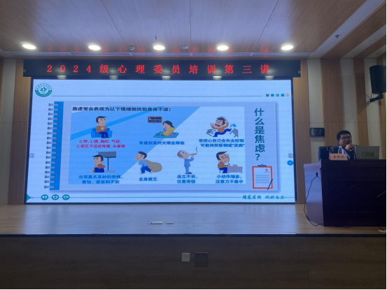 本网讯(通讯员 胡舒乐 周柳)为进一步落实《全面加强和改进新时代学生心理健康工作专项行动计划(2023-2025年)》文件精神,充分发挥朋辈互助的重要作用,提升朋辈心理互助能力,10月至11月,学校在综合楼102报告厅举办四期2024级心理委员培训班。此次培训涵盖大学生常见心理疾病科普、大学生心理危机识别与调适、心理委员谈心谈话技巧、心理主题班会的策划与组织等内容,共有来自15个学院298名新任心理委员参加培训。中南财经政法大学心理中心专职教师余金聪以《...