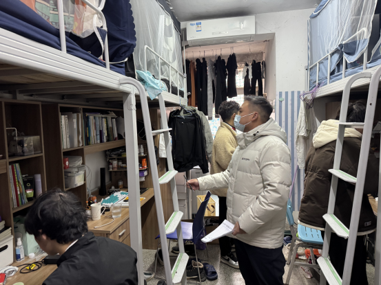 本网讯(通讯员 马超 周雅琪)为切实加强安全隐患排查,保障学生宿舍安全,强化学生自我管理,近日,党委学工部、研工部、保卫部、后勤保障处、国有资产与设备管理处、基建与维修处联合各学院,深入两校区开展学生宿舍联合巡查。各小组重点巡查了宿舍消防安全、用电安全、公共区域杂物堆放等情况。巡查老师现场为同学们讲解了冬季防火、用电的注意事项,普及了消防知识,嘱咐同学们要高度重视消防安全和用电安全,同时对宿舍内务、公共区域卫生等情况进行了登记。...