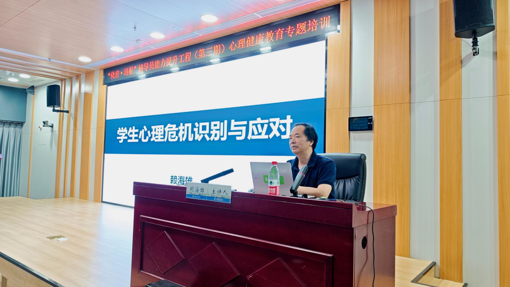 本网讯(通讯员 雷辉)5月15日下午,学校在综合楼102报告厅举办了"化育?培根"辅导员能力提升工程第三期心理健康教育专题培训。此次培训聚焦大学生心理危机的识别与应对,为全体学工人员带来了一场干货满满的知识盛宴。本次培训特邀中国心理学会注册临床工作委员会注册督导师、原武汉大学大学生心理健康教育中心主任赖海雄教授担任主讲嘉宾,带来《大学生心理危机的识别与应对》专题培训。党委学生工作部部长严敏、副部长兼心理健康教育中心主任陈俊、...