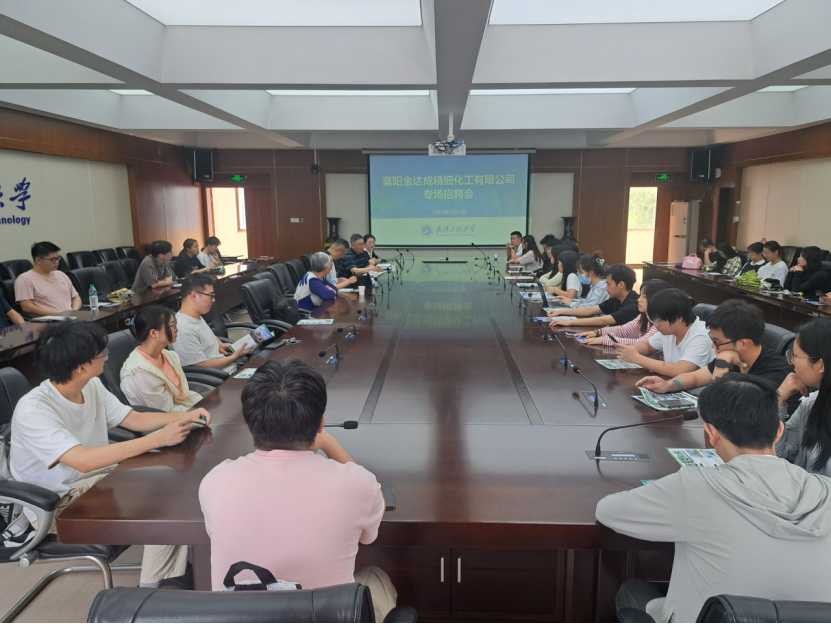 本网讯(通讯员 汤曦)5月26日,化工与制药学院联合机电工程学院、化学与环境工程学院在钟楼第二会议室共同举办襄阳金达成精细化工有限公司专场招聘会。襄阳金达成精细化工有限公司副总刘涵林、总经理张震、总工程师张雪和技术专员张洪梅受邀来校招聘,会议由化工与制药学院党委副书记周丹主持。 刘涵林代表公司向同学们分享了就业前景相关情况,系统介绍了企业规模、公司文化、发展历程、业务板块、用人标准和招聘流程等内容,详细讲解了行业形势及未来发展方向,...